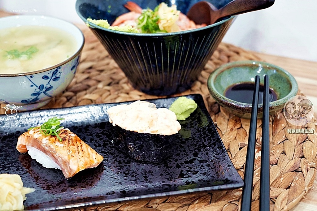 台中北區日式小店|炙鮭-火焰炙燒鮭魚壽司,還有料多海鮮蓋飯、滿滿鮮魚味噌湯