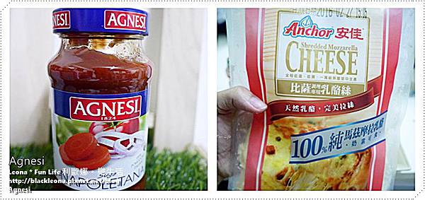 首先在吐司上塗上Agnesi拿波里番茄義大利麵醬,