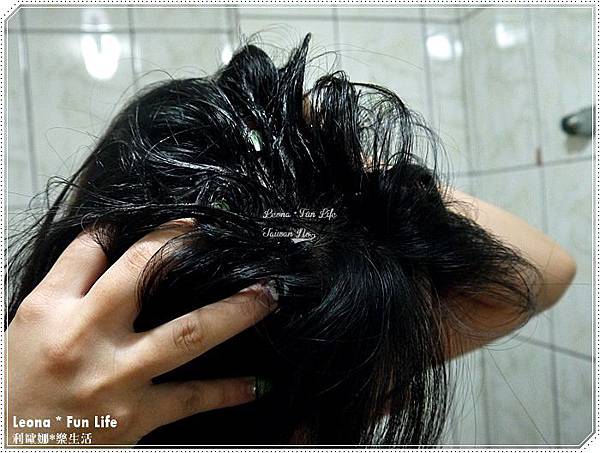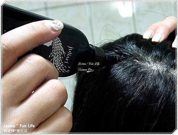 把JuliArt 角質淨化胺基酸洗髮精滴在頭髮上,