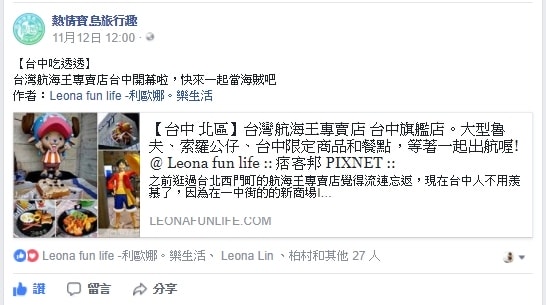 台灣航海王專賣店 台中店 營業時間:11:00 – 21:30 地址:台中市北區一中街98號2樓(I PLAZA愛廣場) 粉絲團:台灣航海王專賣店利歐娜心得分享文 藍箱處 Blue Box 營業…